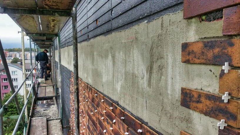 - 4.400 m² EIFS mit EPS (Polystyrol) inklusive Verputz zur Verbesserung der Wärmedämmung und des äußeren Erscheinungsbilds.